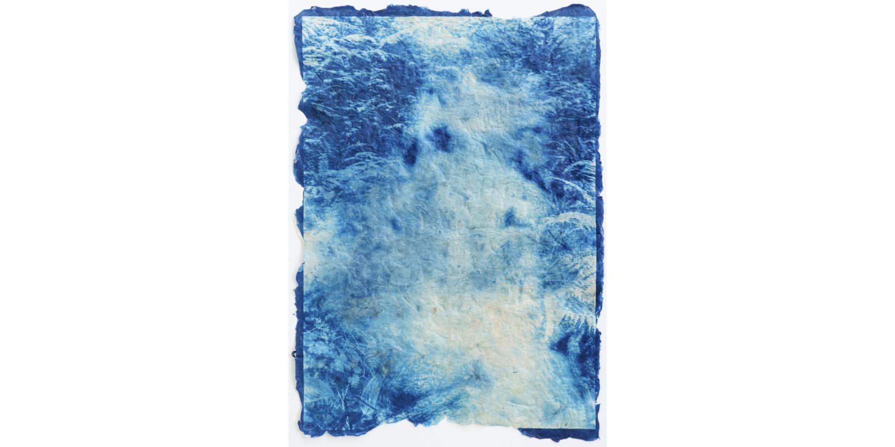 堀江美佳は1984年京都府生まれ。2007年京都造形芸術大学情報デザイン学科卒業、09年キングストン大学ヨーロッパ美術実技(ファインアート)修士課程修了。13年加賀市に自身のスタジオを設立。日本、韓国、ベルギー、オランダ、イギリスでの展示経験がある。自身で作成した和紙を印画紙とし、撮影した写真をプリントするという独自のスタイルで制作。和紙の原料の雁皮(がんぴ)の採集、皮を剥いての生成、漉いて和紙にするまでの工程を全て自身で行い、最後に写真を青一色で印刷。和紙と青色の写真表現の原始的な情熱と美的価値を追求する。