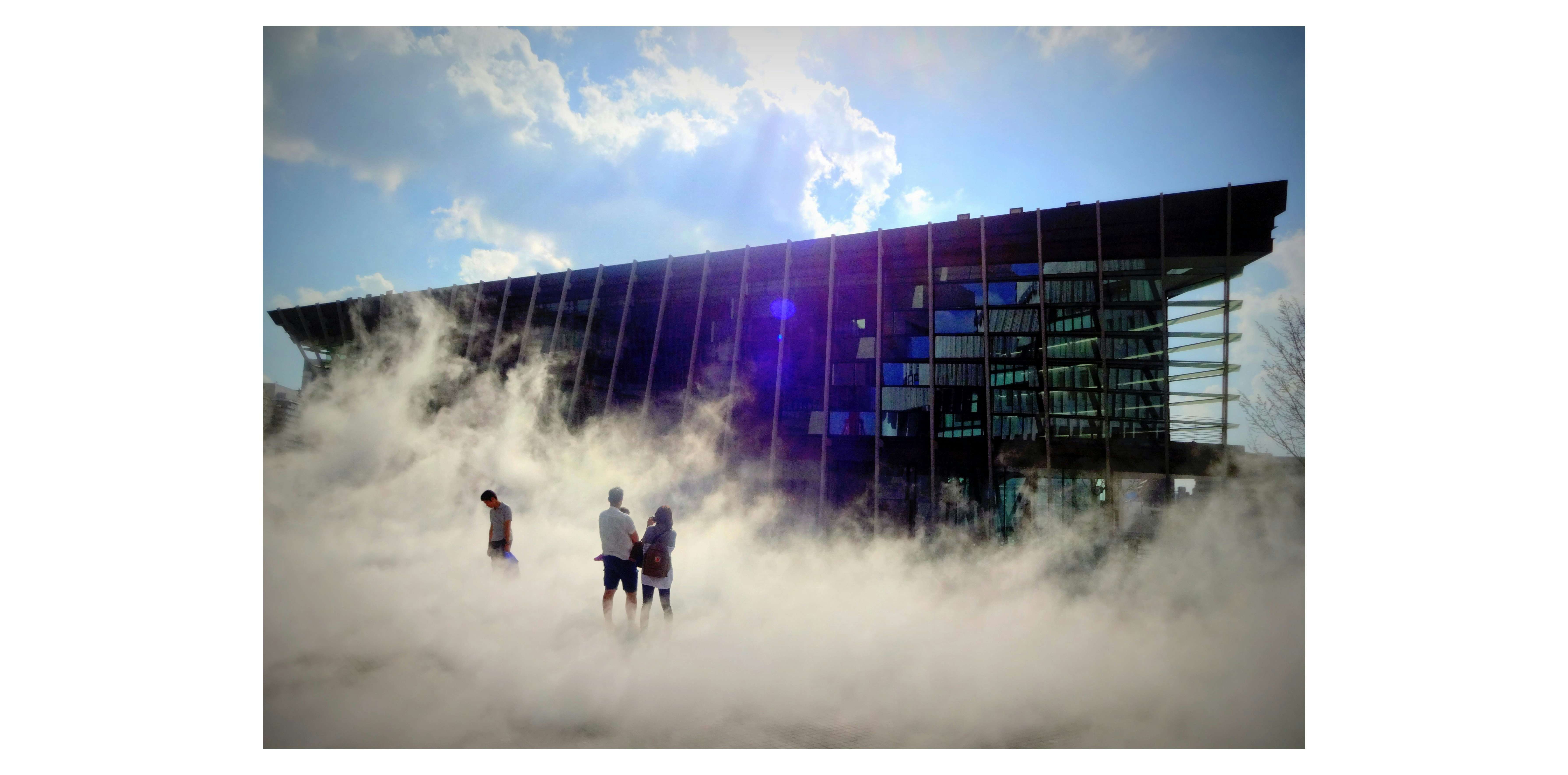 中谷芙二子は1933年北海道札幌市生まれ。父は世界で初めて人工の雪の結晶をつくった実験物理学者の中谷宇吉郎。57年、アメリカ・イリノイ州のノースウェスタン大学美術科を卒業後、パリ、マドリードで絵画を学ぶ。60年に帰国し、62年に東京画廊で日本初個展を開催。66年、芸術と技術の協働を推進する実験グループ「E. A. T.」に参加し、その活動の一環として大阪万博ペプシ館(1970)にて、人工の霧を大量に発生させる「霧の彫刻」を初めて発表する。70年代は、ヴィデオ・アートを軸に活動し、グループ「ビデオひろば」を結成。社会問題を洞察した作品を制作する傍ら、79年に配給会社「株式会社プロセスアート」を、80年に「ビデオギャラリーSCAN」(東京・原宿)を設立し、日本における若手ヴィデオ作家の発掘と支援に尽力する。この功績が認められ、2008年に文化庁メディア芸術祭功労賞を受賞した。