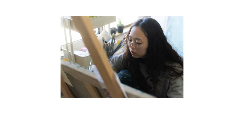 岩崎奏波は1996年沖縄県生まれ。2022年多摩美術大学大学院 美術研究科博士前期課程絵画専攻油画研究領域修了。記憶はどう変化し、残されるのか。時間はどう流れているのか、または本当に流れていくものなのか。物語を絵によって語るとき、私と鑑賞者、作品に何が起こるのか。私と、私以外の境界線と共通項は何か。絵を描くことで、絵画空間と自身の存在する空間がどのように異なり、またはつながっているのかを確かめ、絵画という空間が可能にすることを探りながら制作をしている。