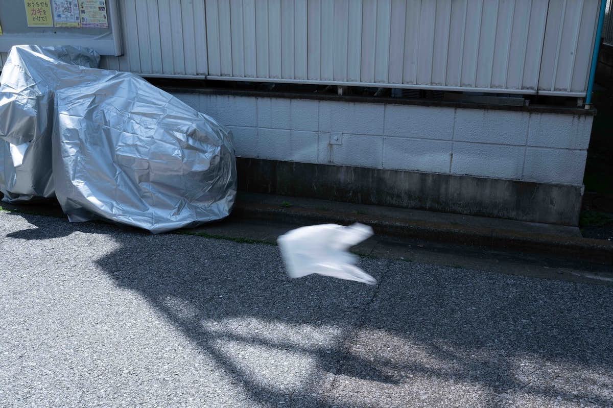 横手は1998年生まれ、神奈川県逗子市出身。現在、東京藝術大学美術研究科彫刻専攻に在籍。ビニール袋、瓦礫、道に転がる石、ブルーシートなど普段気にとどめる機会が少ない身近なものに着目し、既製品の動きを使った彫刻やインスタレーションなどの制作を行う。