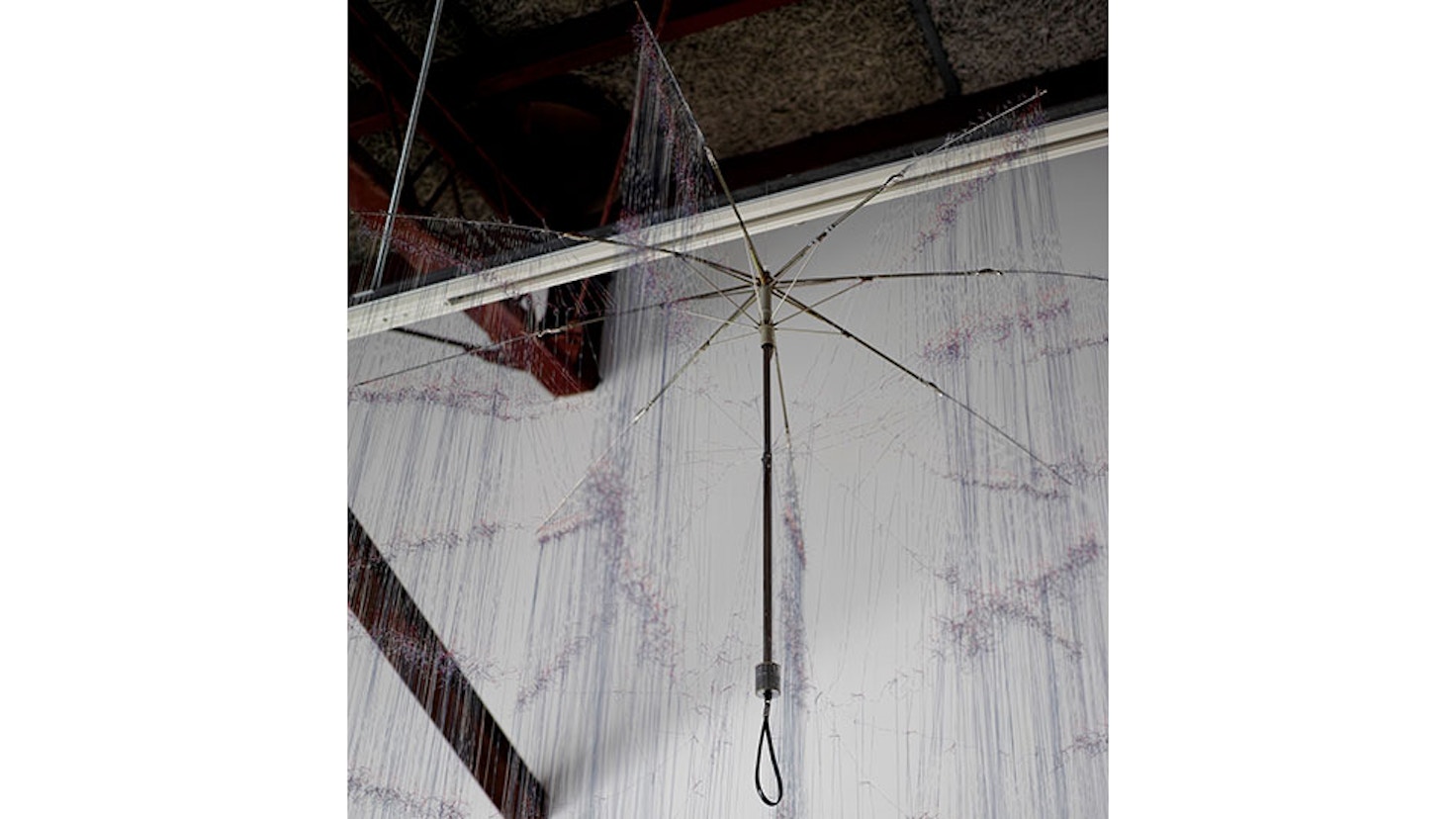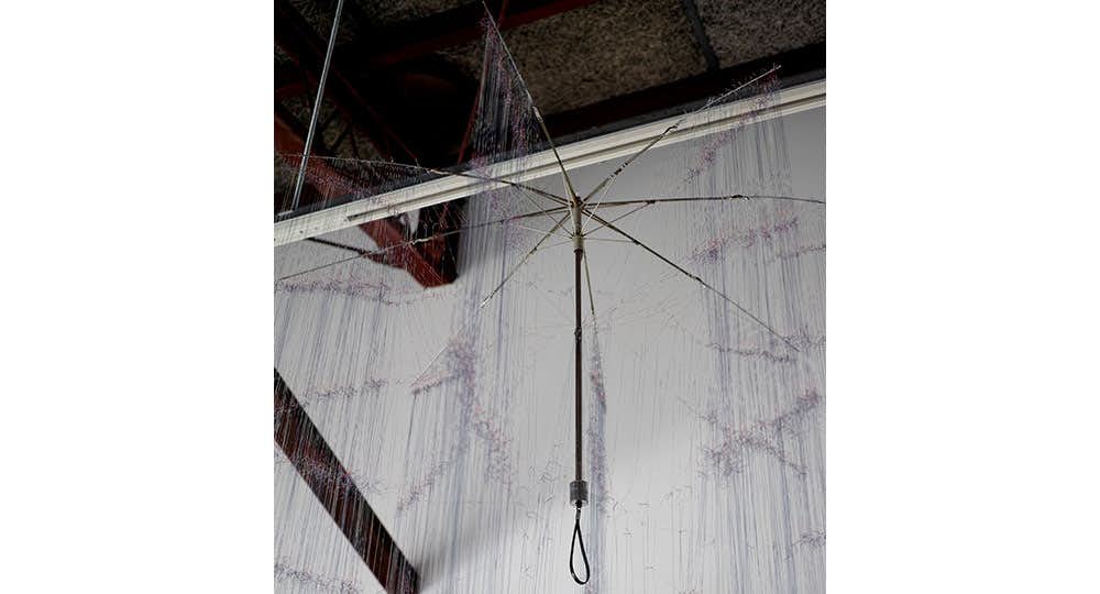 今回の展示では、広島の様々な場所で忘れ物として保管されていた傘を譲り受け、それらを解いたインスタレーション作品を展開する。
