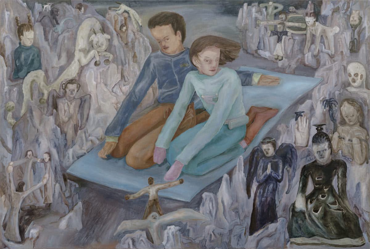 記憶の具現化を表現のテーマとする陳雲(Chen Yun)は、複数のパネルを組み合わせることによるモンタージュ的な⼿法を⽤い、抽象と具象を同時に提⽰。⽇常的に⽬にするモダンスタイルの⼈物を、リリカルな映画のようなシーンに登場させる。そして寺本明志の絵画は、⽇常のモチーフを異なる空間に配置することで⾮⽇常な景⾊をつくり出し、私たち人間を含め、⽣きている環境にある様々な要素の関係性を再考することを促す。
