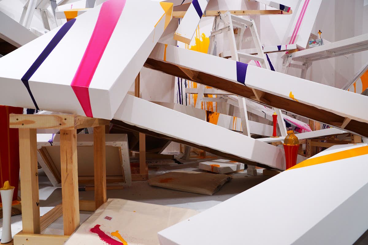 今回、UCHIGO and SHIZIMI Galleryでは「OPEN STUDIO & EXHIBITION」と題し公開制作をすると同時に平⾯作品を発表。会期中、公開制作の回数を重ねるごとに作品⾃体が変化を遂げ、時間・場所・集まる⼈とともに、ひとつの作品があらゆる表情をもって成⻑していく。