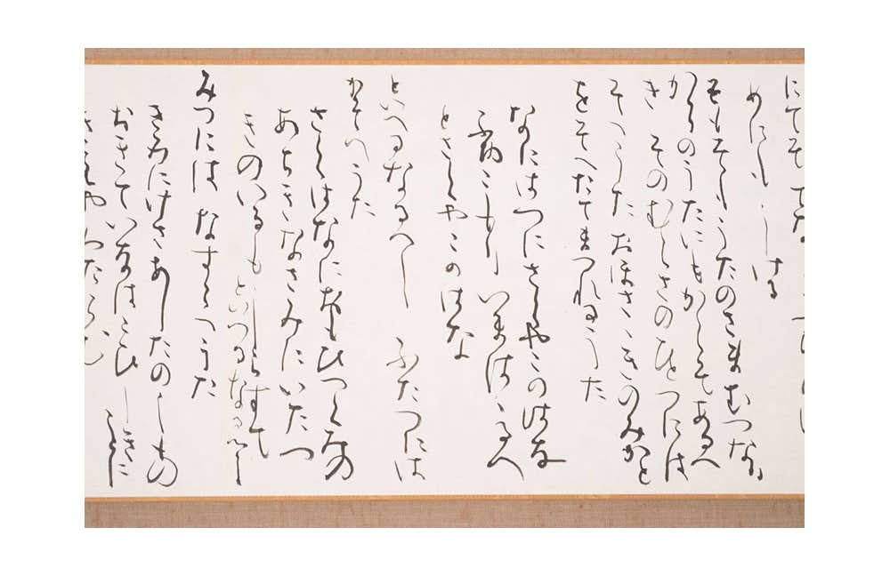 本展において財前は探究の結実として、現代人も読むことのできる平仮名で古典をつづった新作16点を展示。今回の展示には、日本文化の重要な芸術のひとつでもある「書」の魅力を改めて感じられる場をつくりたいという、財前の想いが込められている。