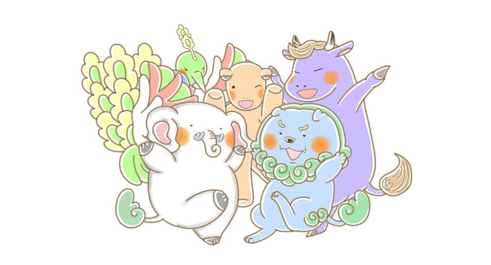 本展では、仏像や仏画などに表されたほとけの「かたち」に注目。5匹のキャラクター「ざんまいず」をナビゲーターに、ほとけに込められた祈りや意味について、わかりやすく紹介する。
