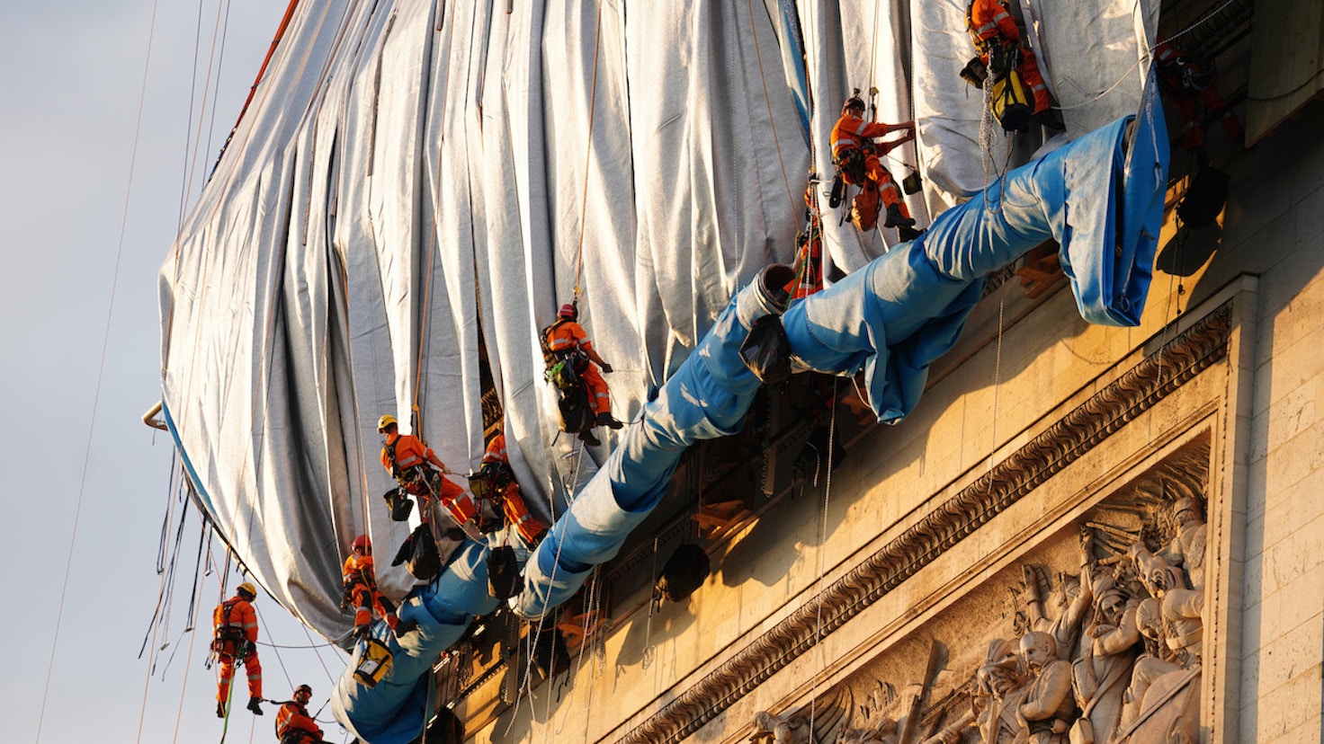 「包まれた凱旋門」のプロジェクトもそのひとつ。当初2020年に実現予定だったが、新型コロナウイルス感染拡大のため延期となり、クリストは完成を見ることなく同年5月に他界。その後、多くの賛同者の協力のもと、構想から60年という歳月をかけて、2021年9月に実現の日を迎えた。