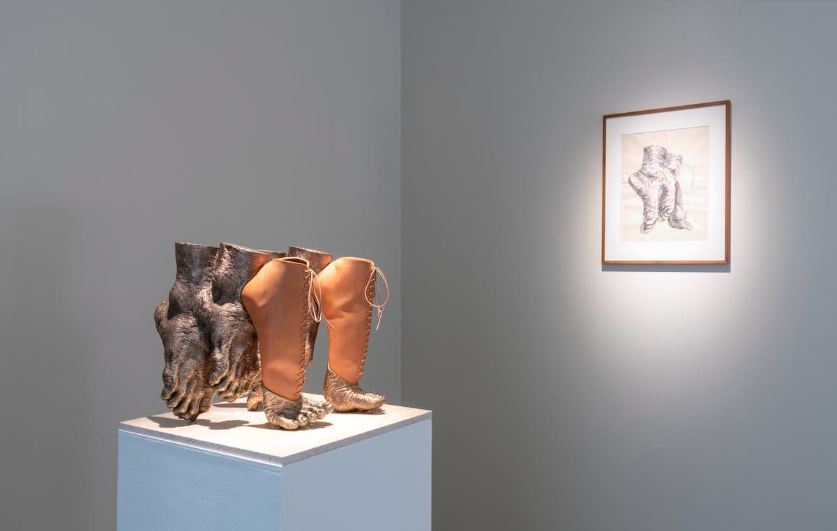 花を人の人生、靴を花器に例える串野は次のように話す。「靴 − それは一歩一歩を刻む、人の歩みを象徴し、少しずつ前進していく私たちの人生を表す彫刻でもあります。生きることは記憶の連続であると同時に、忘却の連続でもあり、忘れることによって、膨大な記憶の重力から解き放たれ、私たちは一歩前へと足を踏み出すことができるのではないでしょうか。しかし、記憶の忘却は永遠に失うことではなく、歩んできた時間の中に連なる壁の隙間にそっと潜み、何かがきっかけでその記憶は必要な時にだけ話しかけてくる」。
