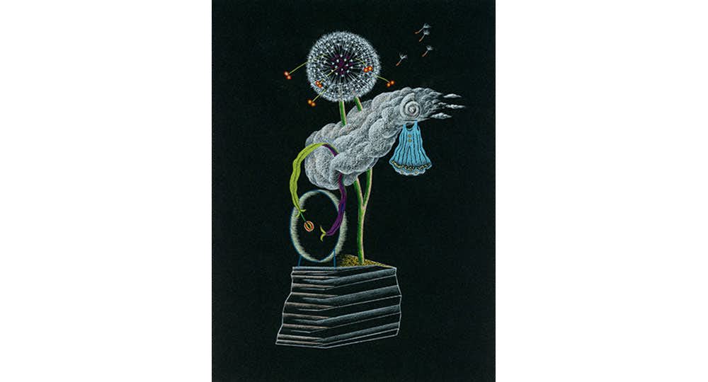 本展では、シュルレアリスムにおける作品の共同制作の手法「優美な屍骸」に着想を得て、植物を描いた作品シリーズを発表。加えて、流れる雲のドローイングなど約25点を展示する。