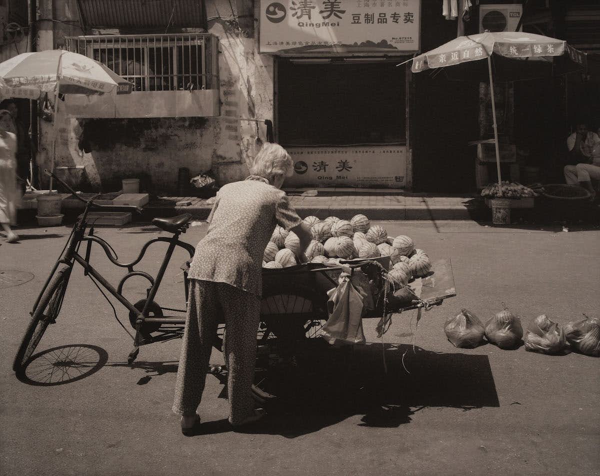 本展では、2010年の上海国際博覧会を間近に控え、古い建物が次々取り壊され、街が近代的な建物に塗り替えられている上海の、失われてゆく古くからの生活風景をとらえた作品約30点を、作者自身の手によるプラチナパラジウムプリントで展示している。