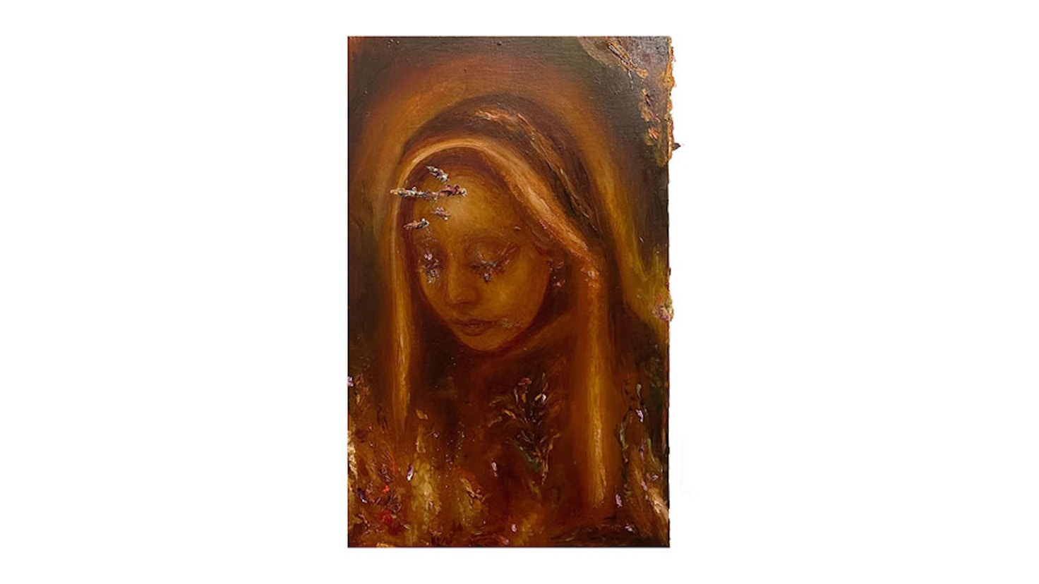 後藤は2019年に⼥⼦美術⼤学を卒業後、22年に東京藝術⼤学⼤学院美術研究科修⼠課程油画専攻第⼀研究室を修了。これまで、弾圧されながらも負の感情に争い戦い続ける、罪なき⼈々に光を当てる絵画作品を制作してきた。