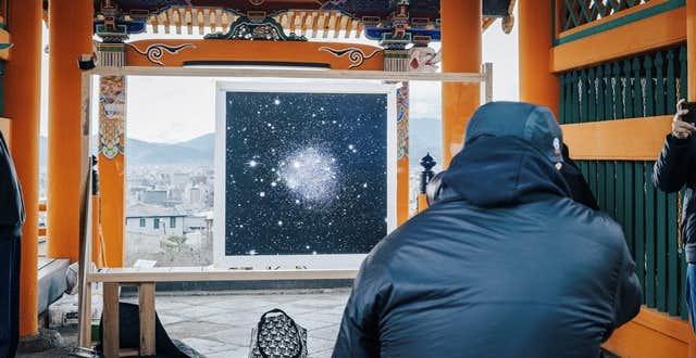 大宇宙を数千万年旅した光や時間を1枚のフィルムに閉じ込めた新シリーズ「TIME」や、清水寺の本尊「十一面千手観音菩薩」をモチーフとする新シリーズ「KAN-NON」を発表。これらは、京都屈指の夕陽の名所である清水寺の西門(重要文化財)を舞台に制作された作品だ。西門に注ぎ込む極楽浄土を表す夕陽を、あらかじめ撮影した写真に透かし、再び撮影することで作品を完成させている。