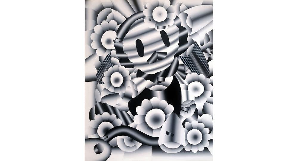 本展「Happy Flower Friends」は、草花とともに様々なキャラクターを描きながら、古代から未来まで続く文明の衝突を語ることをテーマとしている。多様なジャンルの表現を融合させながら、キャンバスのなかに過去・現在・未来を描く、独自の美しいモノクローム表現を楽しみたい。