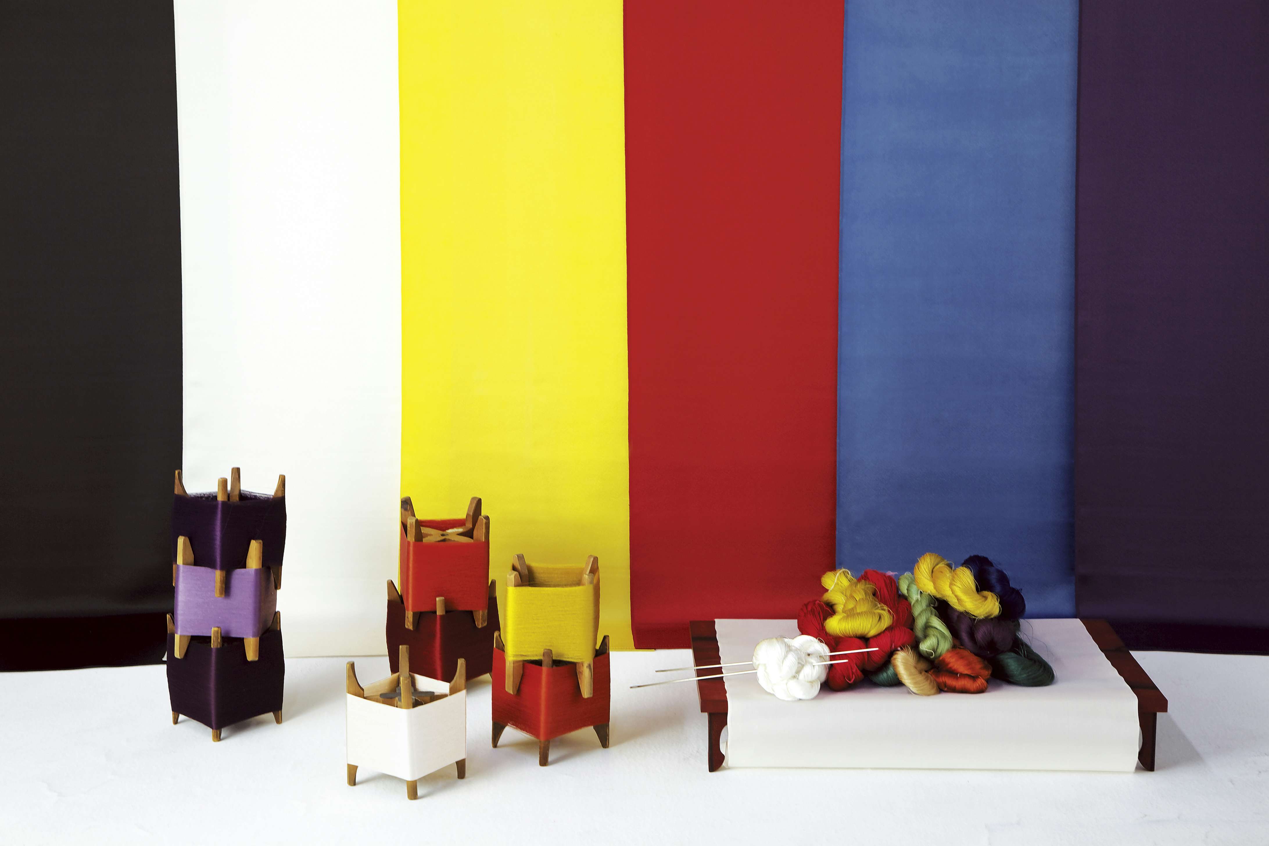 出品作は染織の資料なども交えて展示。美しい色彩や素材へのこだわり、技の継承や職人の育成と、様々な想いをたどりながら、染織に挑み、染織に魅せられた2人の姿を紹介する。