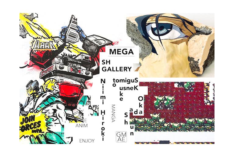 SH GALLERYではグループ展「MEGA」を開催する。参加作家は、クリエティブの消費の加速を批判的にとらえるにいみひろき、キャラクターの身体を描いたオブジェを制作する杉本憲相、そしてファミコンなどのバグをモチーフとする岡田舜の3名。