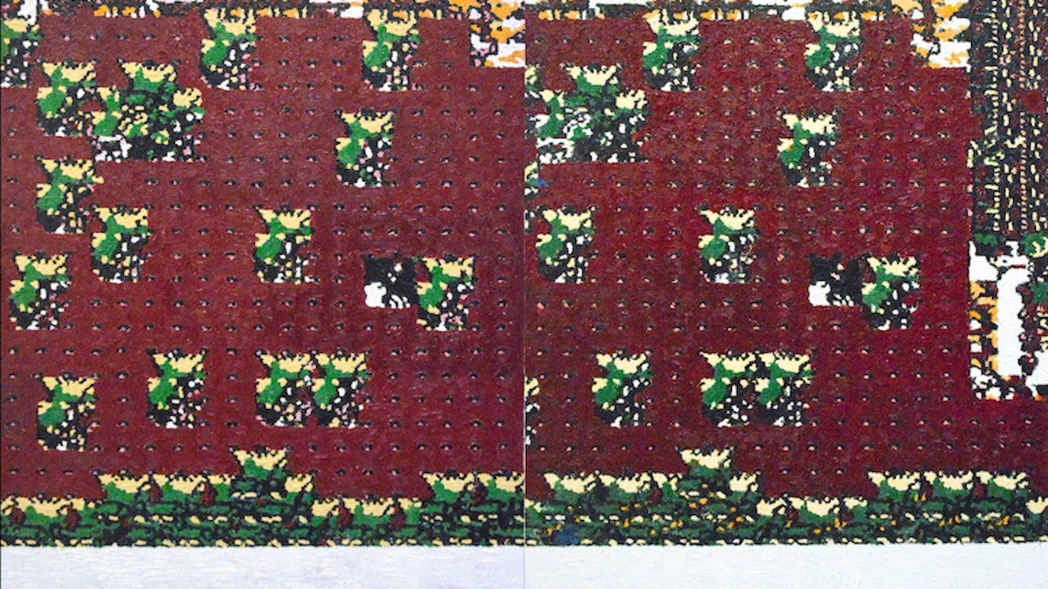 杉本憲相は、建築物の断片からジャンクPCまで、多様な「死したマテリアル」にキャラクターの身体を描いたオブジェなどを制作。そして岡田舜は、アナログノイズやファミコンのバグなど、現在では消滅しつつある初期のデジタル現象に興味を持ち、デジタルとアナログの中間を探る絵画表現を行っている。