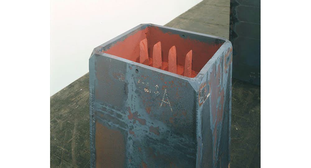 戦後日本を代表する彫刻家のひとり・若林奮(1936〜2003)。若林は1993年より数年間、雛菊の名前を冠した「Daisy」シリーズを集中的に制作した。初めて発表された「Daisy Ⅰ」はすべて鉄製の四角柱で、上部がくり抜かれ、植物の葉を思わせるかたちが彫り込まれたり、区分けされたりなどして、くり抜かれ部分にベンガラや胡粉といった粉末が収められている。
