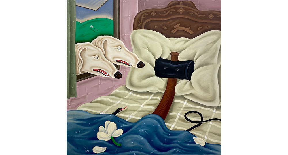 いっぽう高瀬は1994年大阪府生まれ。2020年に京都市立芸術大学修士課程美術研究科絵画専攻油画を修了。人間の内包されている感情や、コミュニケーションでは見透すことができない内に秘めているものなどを動物に置き換えながら、ユーモラスな物語へと昇華している。