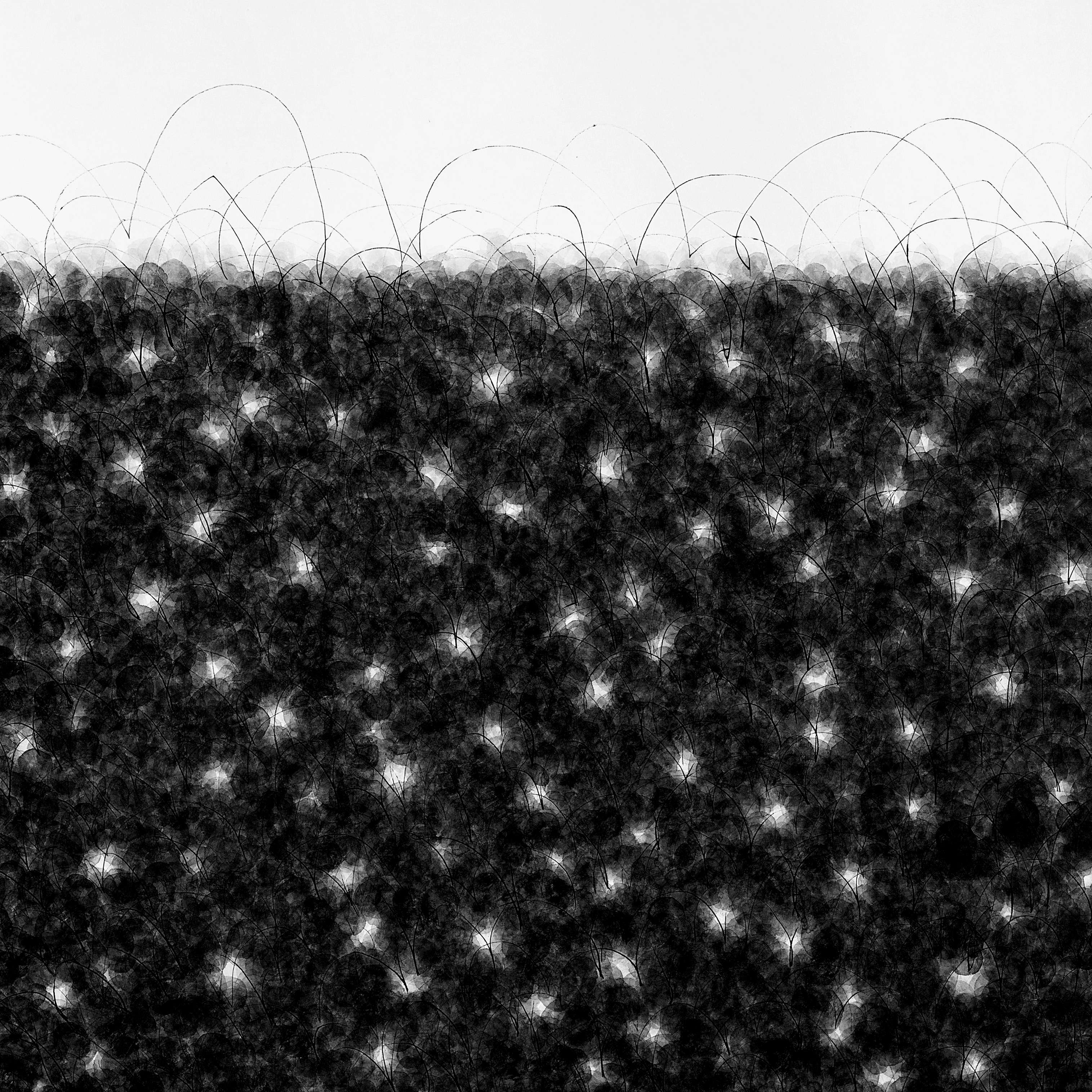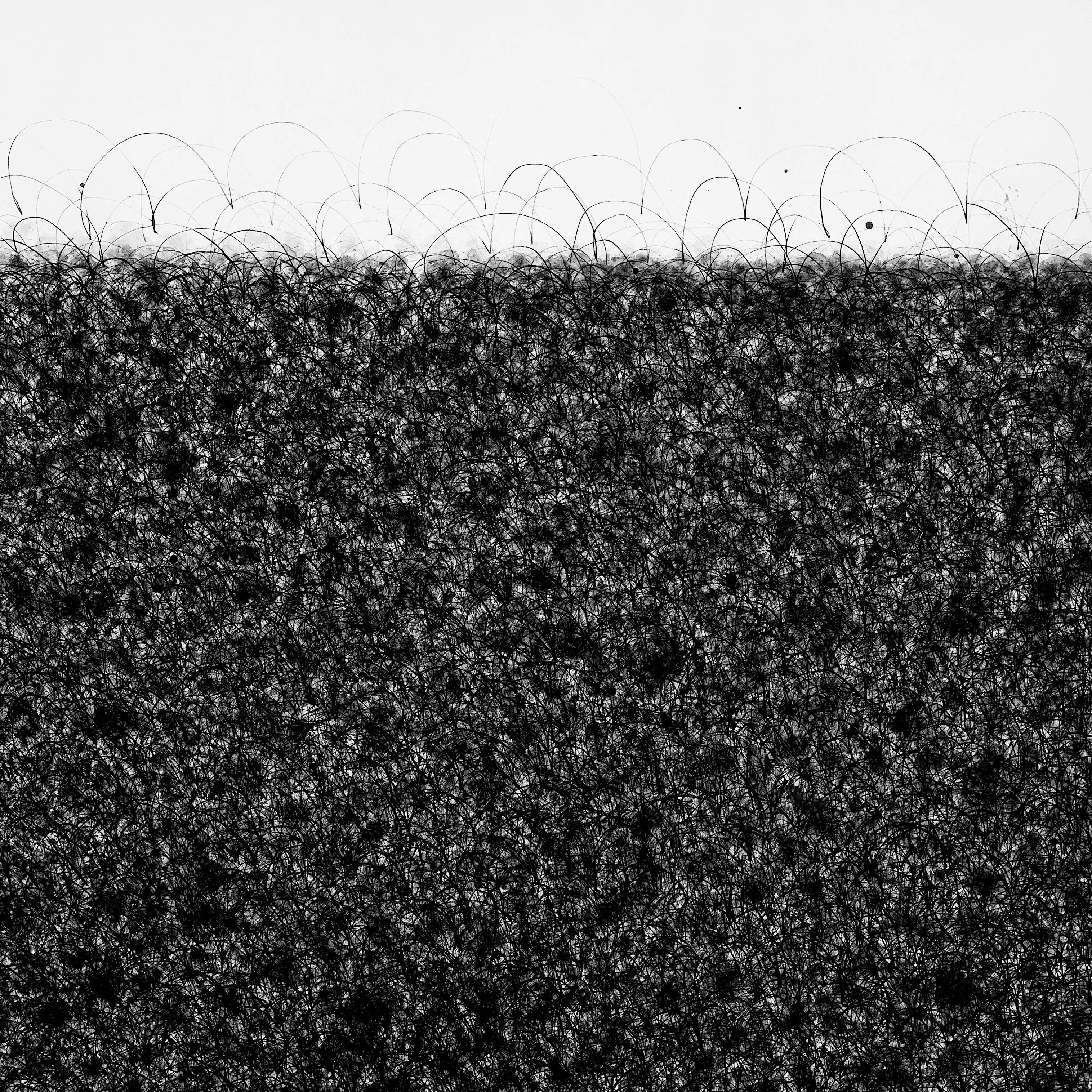 濃淡の異なる墨の「点」や「線」を無数に描き、風や光を表現した抽象的な作品をつくる斉藤文春。