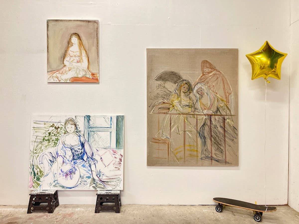 飯田は、2018年に京都造形芸術大学大学院油画コースを修了後、愛知県を拠点に活動。関西での個展やグループ展に精力的に参加しており、近年ではアートフェアなどへの参加を通して、東京でも注目度を高めている。