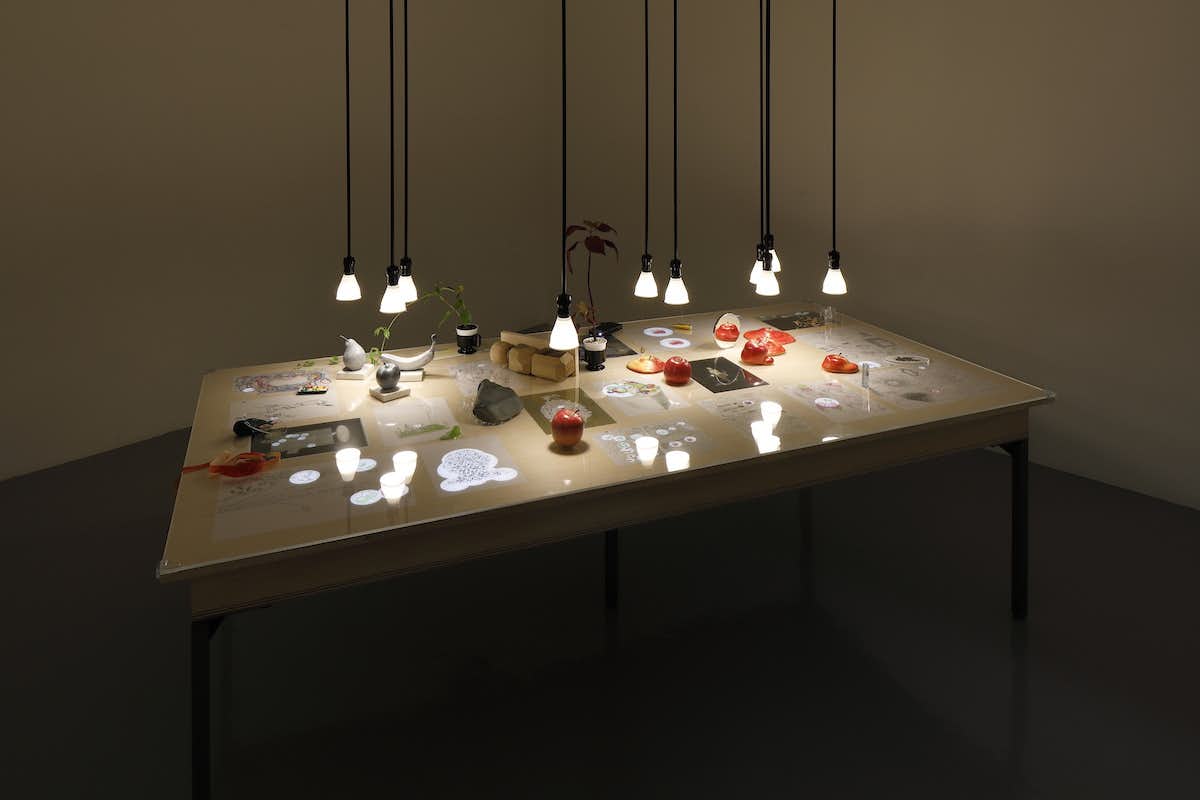 出品作家のひとりである雨宮庸介は自身の作品を、「最も毒の無いテーマを扱っている体裁を丁寧に整え、気付かれずに軽量の爆弾を持ち帰らせるような仕組みを常に考えている」(2018年、SNOW Contemporary個展・ステイトメントより抜粋)と言明している。例えばその代表作でもある溶けたりんごの彫刻作品「apple」は、日常における普遍的な形状のりんごに「溶ける」というズレを加えることで、鑑賞者に対し、この世界の多重な認識の在り方を感知させる。