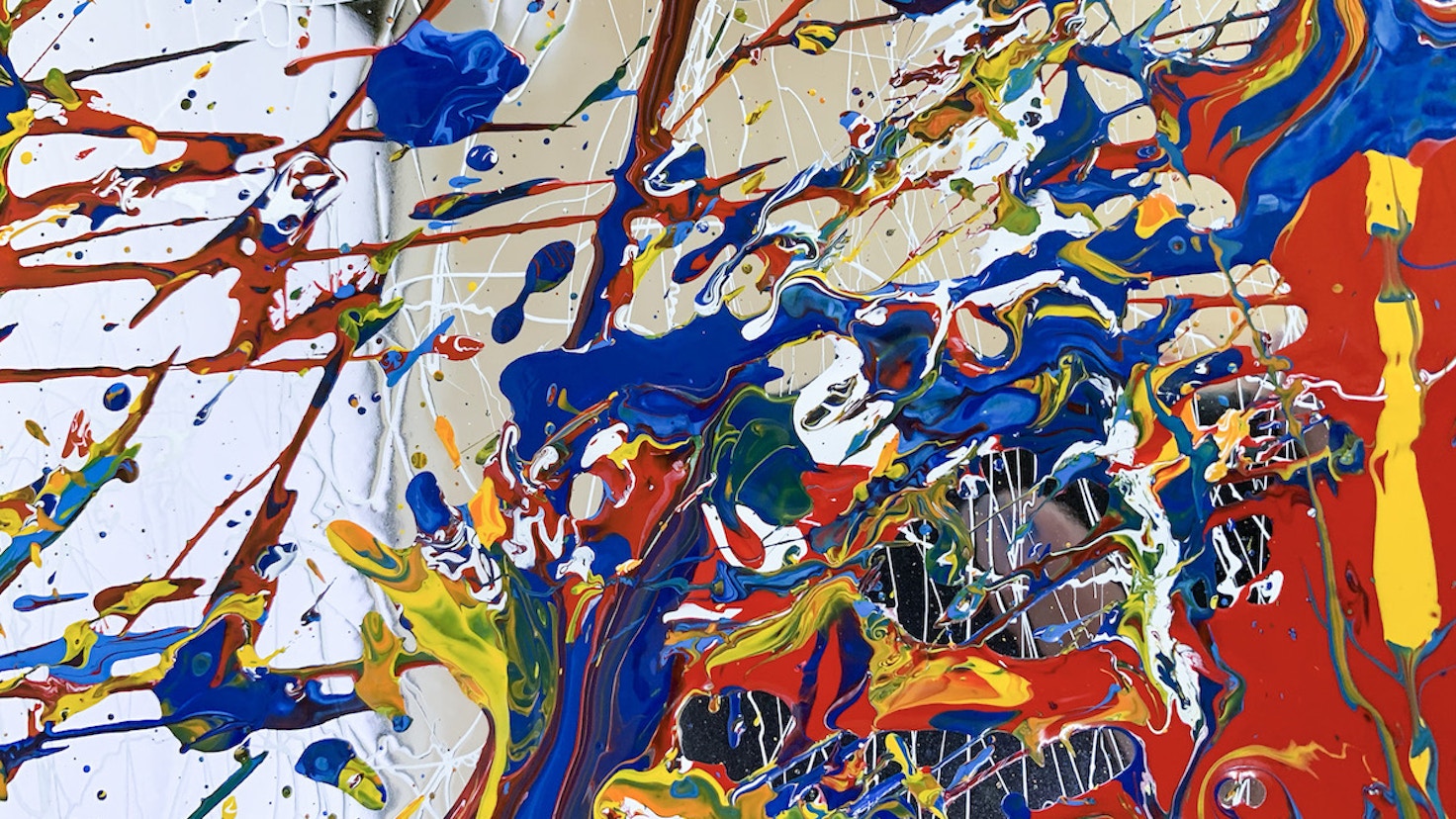 いっぽう「Landslide #Border」は、ブルーとイエローの2色で構成された面に、白・青・赤の三色が国境を侵蝕する様相を表象化した作品。加えて本展では、時間の不可逆性を操作する「Replacement」シリーズの新作も展示し、つねに前進し続ける藤元の表現の最先端を見せる。