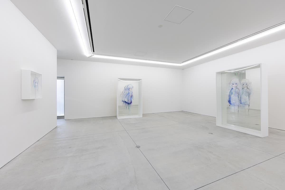 本展では、鏡を用いた箱式絵画の新作を発表。等身大の少女像にスケールを合わせた大型作品から、小型の作品まで約10点が展示される。