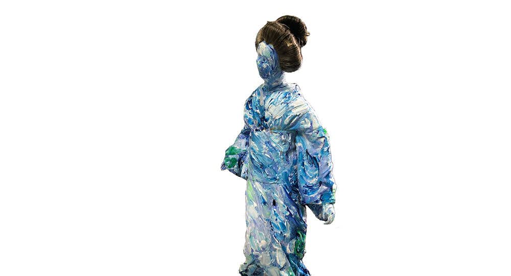 岡⽥裕⼦は映像、写真、絵画、インスタレーションなど、様々なメディアを用いて、恋愛、結婚、出産、子育てといった、自らの実体験を通したリアリティのある視点で、現代社会へのメッセージ性の高い作品を制作してきた。2020年以降、コロナ禍でもその活動は途切れることなく「感染の社会を考える」アートとファッションの試み「WHIROKOPROJECT」を開始。ソーシャルディスタンスの距離に合わせて形状の変わる服の作品《Di_STANCE》などを発表している。