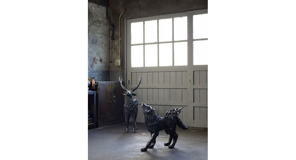 第1部を構成するのは、架空動物やその対極にある⾝近な動物を題材に「恒久⽣」と「儚さ」を表現した新シリーズだ。そして第2部では、これまで秋永が手がけてきた骨格シリーズから、龍やケンタウロスなどが本展にて初展示される。「擬態化」をさらに展開させ、装飾というベールに覆われた物事の本質を探究するような作品が並ぶ。
