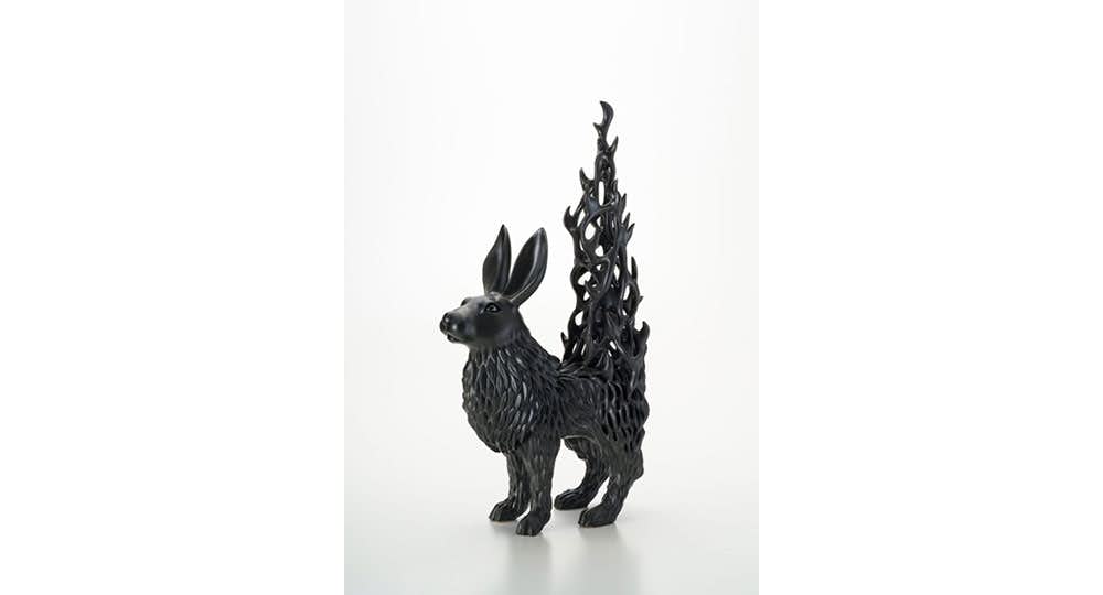 秋永は1978年⼤阪府⽣まれ。2001年に⼤阪芸術⼤学芸術学部⼯芸学科陶芸コースを卒業。「装飾の⼒」をテーマに「擬態化」シリーズの制作を続け、近年はとくに、架空動物をモチーフに作品を制作している。