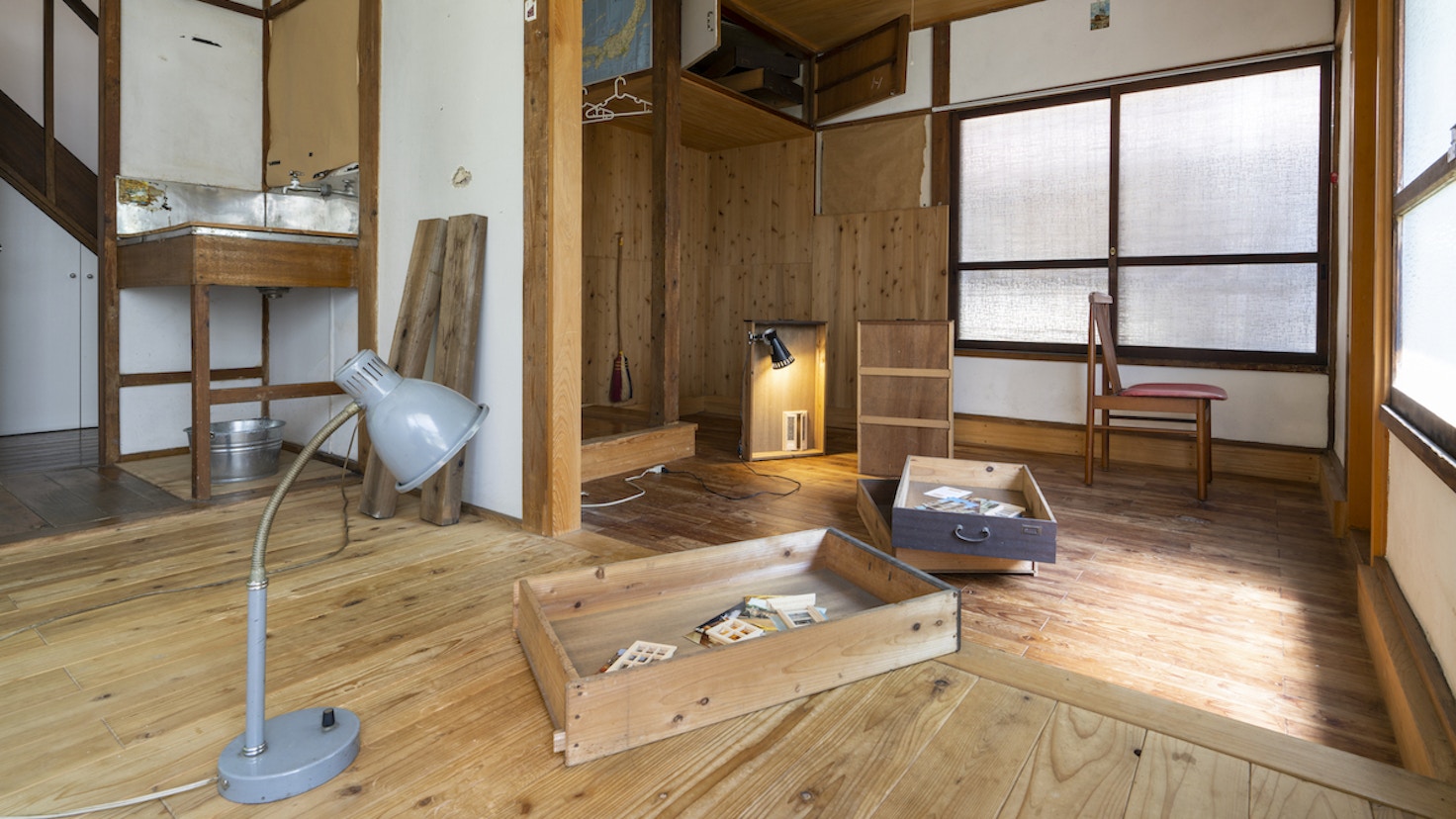 会場となる「柿の木荘」は、1966年に建てられた木造アパート。かつて賃貸アパートとして、そして2016年からは主にアーティスト・イン・レジデンスの滞在施設として使用されてきた。しかし、パンデミックの影響により存続できない状態となり、新たな用途のために改修が行われることとなった。