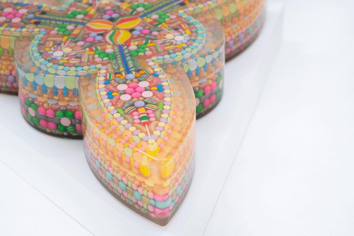 今回の「Sugar Coated Lies」は、賞味期限の過ぎた砂糖菓子(簡単に手に入るものの、長続きはしない満足感への誘惑を象徴するもの)を素材としている。グリム童話『ヘンゼルとグレーテル』の現代的な解釈を一風変わった素材で行い、人間の欲深さと誘惑の象徴として、食欲を刺激する砂糖菓子という素材が強調されている。そして彫刻に、「3D立体モデリング」と「AR(Augmented Reality)世界の彫刻というデジタル技術」を駆使した点で、インスアにとって新機軸となる作品だ。制作にあたっては、strata Creative Technology Studioのガイダンスのもと、オープンソースの3Dデザインソフト「Blender」とstrataのカスタム・ツールを取り入れ、フィジカルとデジタルを融合している。