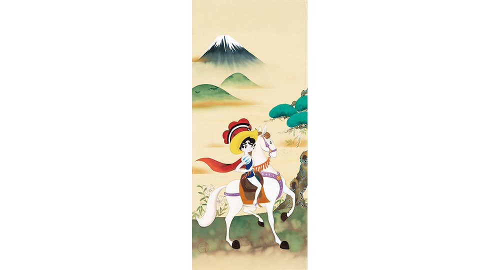 出品作では、「初音ミク × 鶏」「鉄腕アトム × 富士山」「リラックマ × 磯馴松」などの組み合わせで融合し、日本のポップカルチャーを代表するキャラクターが、琳派や若冲など江戸時代の名画の一場面を借りて、あるいはモチーフの一部に成り代わって登場する。意表を衝くマッチングの妙、そして背景も主役もすべて手描きによって写し取った、絵師の筆技も見どころのひとつとなる。
