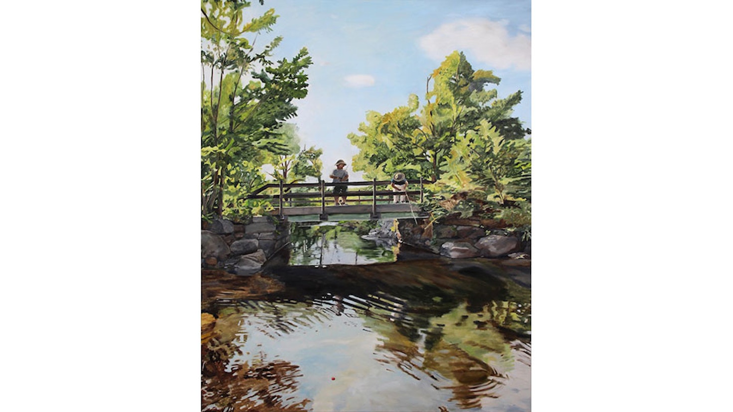 展覧会タイトル「Summer Hours」という言葉の通り、本展で展示される作品では、夏の明るく眩しいほどの陽の光や、大きな木々から降り注ぐ木漏れ日、はしゃぐ子供たちが描かれ、水面に映る景色は高く広がる空をも反射させ、満月の月明かりは柔らかくあたり一面を照らしている。また倉田の作品は、あえて登場する人物たちの表情を単純化するという、デフォルメを用いたその自由な描写によってより馴染み深く、キャンバス一面に広がるユーモラスな絵画世界へ見る者を誘う。