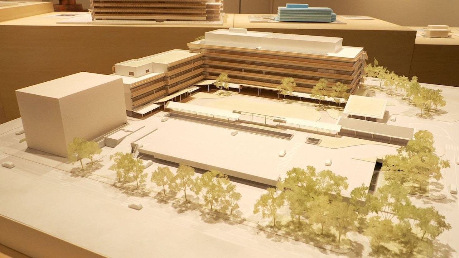 本展では、新庁舎の設計を手がけた建築家・隈研吾による初期段階のマケットなどの資料を通して、新庁舎がどのような過程を経て完成を迎えるのかを紹介する。