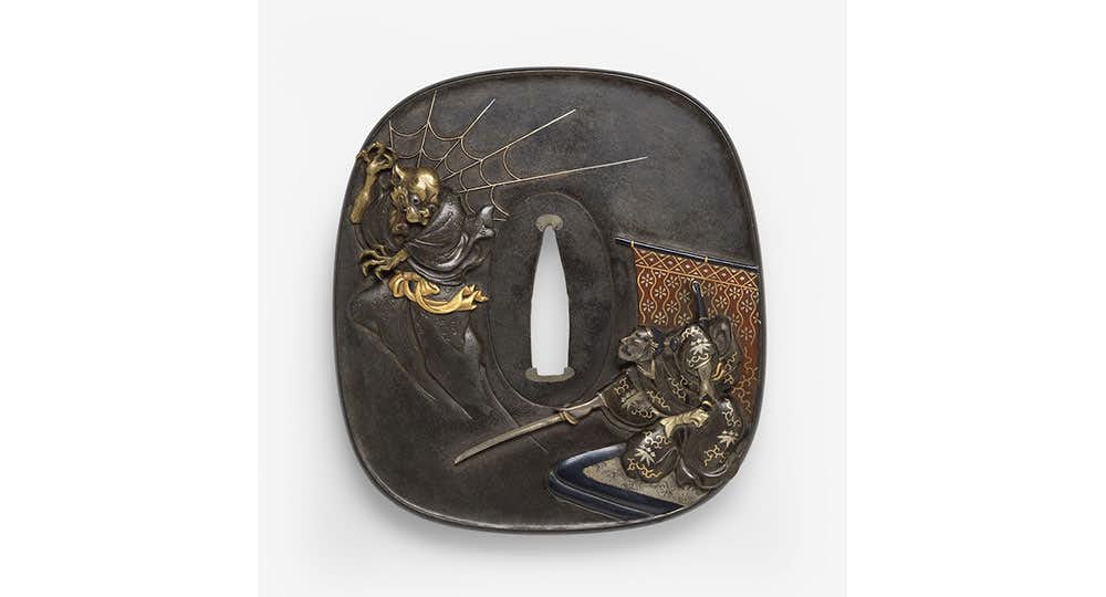 スサノオノミコトとヤマタノオロチの戦いや源平合戦、上杉謙信と武田信玄の合戦など、軍記物語や武勇伝説に見られる英雄たちの姿を描いた武者絵は、浮世絵の祖と呼ばれる菱川師宣の時代から、多くの浮世絵師が手がけてきた。また、そうした武者絵と共通するイメージは、刀剣の鐔のデザインとしても使用されている。