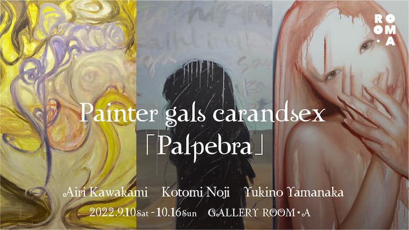 GALLERY ROOM・Aでは、2017年に京都造形芸術大学油画コースに入学した川上愛理、野地ことみ、山中雪乃の3人で結成された「Painter gals carandsex」による展覧会「Palpebra」が開催される。