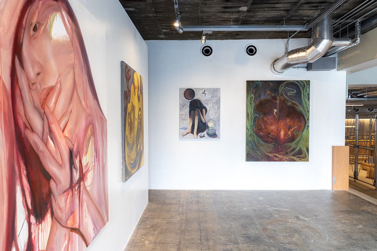 本展では、Painter gals carandsexの3人がそれぞれの視点で新作を発表。互いの作品が共鳴し合うような空間をつくり上げる。
