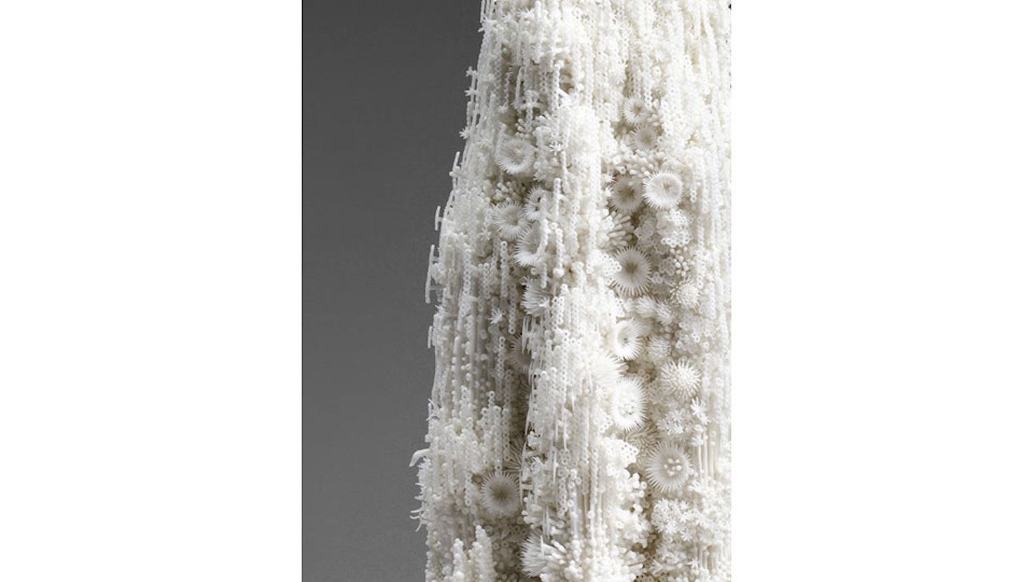 稲崎栄利子(いなざき・えりこ)は1972年兵庫県生まれ。現在、高松市在住。95年武蔵野美術大学造形学部陶磁コース卒業、97年京都市立芸術大学大学院専攻陶磁器修了。独自の繊細な技法により陶芸の可能性を拡張を試みている。写真作品《現像》(2018)では、1ミリ程度の太さの土による細かなパーツを無数に組み合わせ、高さ40センチ弱の山のようにかたちにしている。