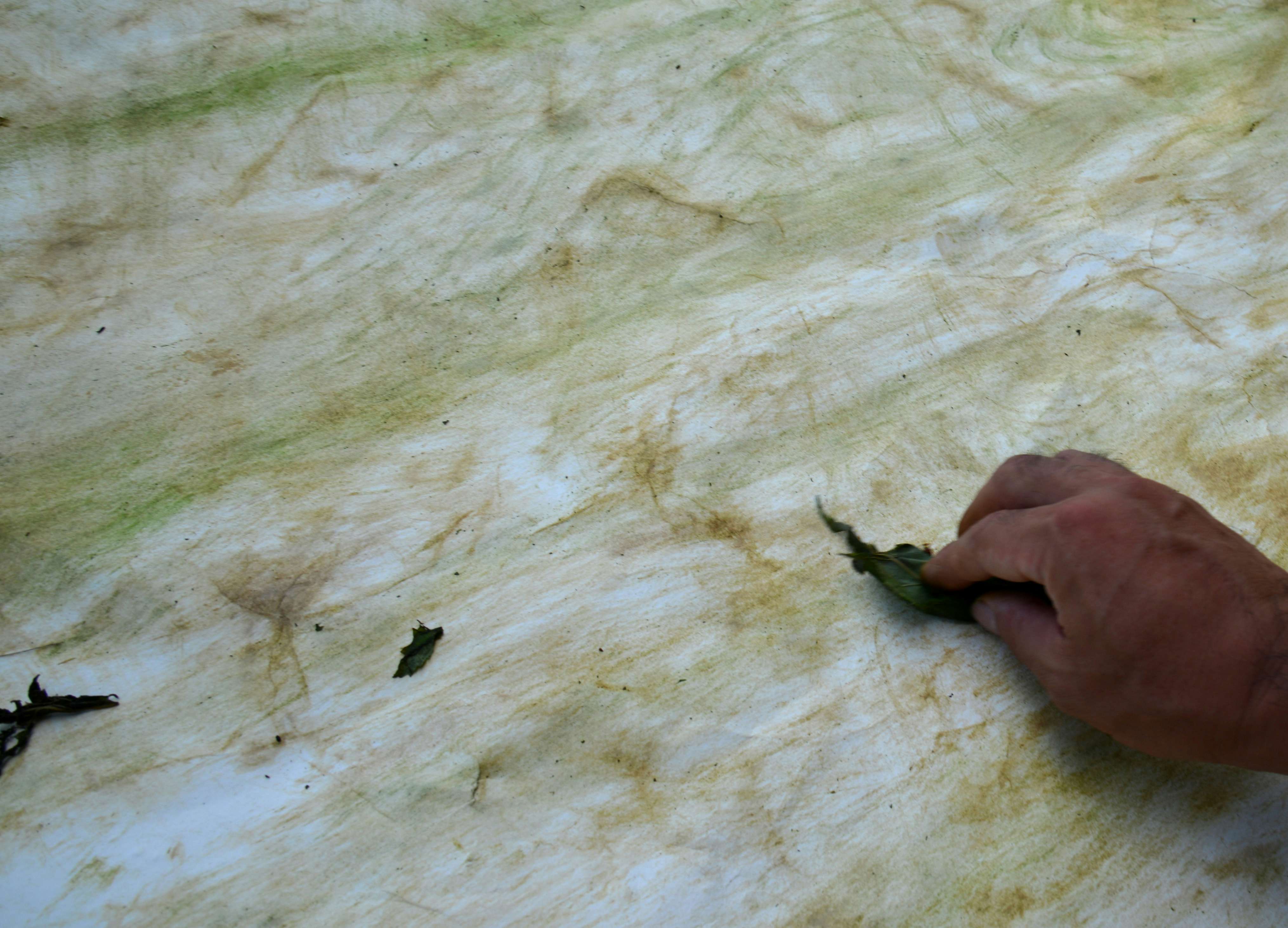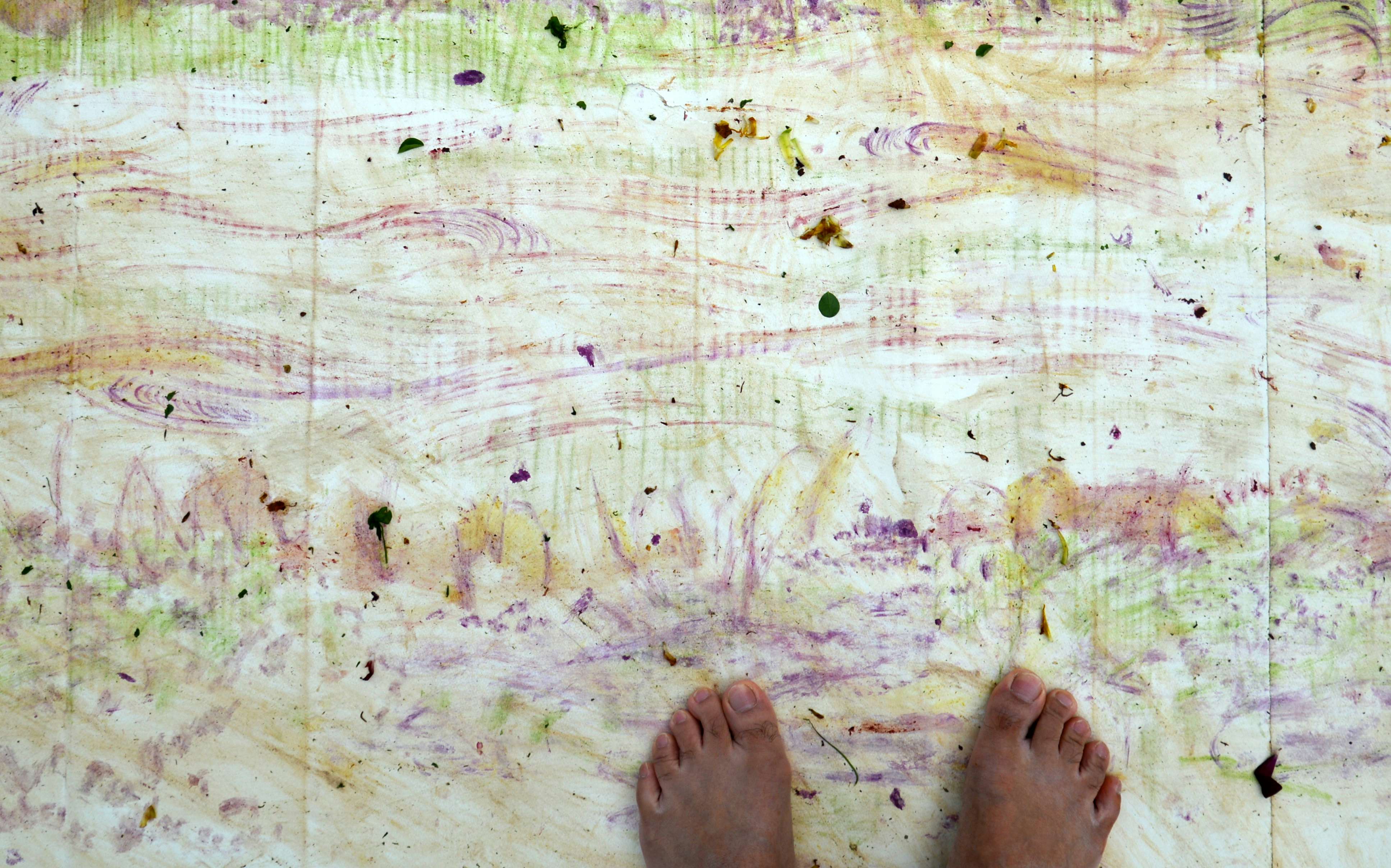 つぶされ、こすられ、微かににじみでる草木の内側の色は、植物のもつ生命力とその輝き、ときの重なりとその尊さを浮き上がらせ、ちいさなものの強さや美しさを静かにゆっくりと浸透させるだろう。