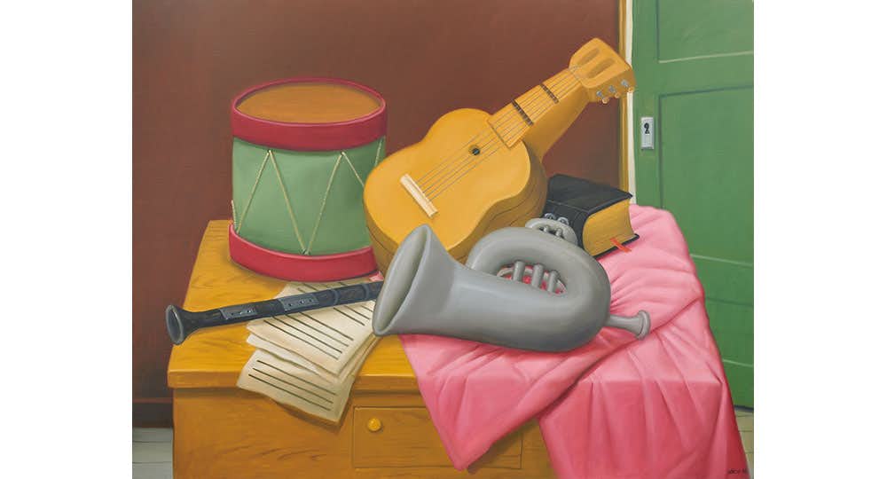 ボテロの作品に描かれる人物や動物はいずれもふくよかで、果物は熟れきっているかのように膨らみ、楽器や日用品さえも膨張している。ボリュームを与えられた対象には、官能、ユーモアやアイロニーなど複雑な意味合いが含まれ、見る人の様々な感覚に力強く訴えかける。