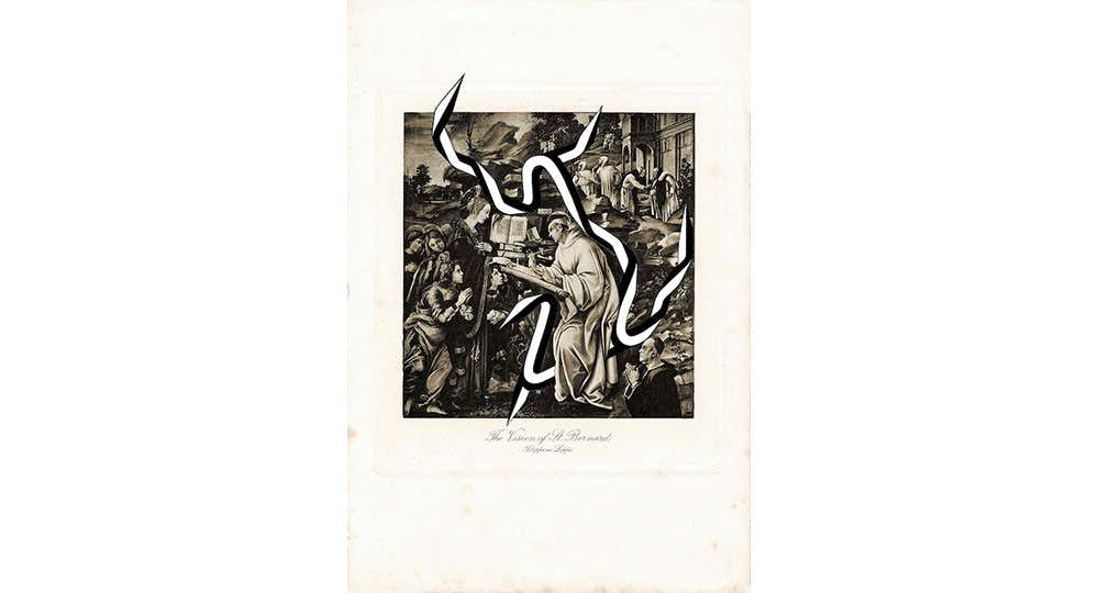 本展「Epiphany」では、⼤⼭が2012年の渡⽶後まもなくして制作を始めた「Found Object」シリーズの最新作を中⼼に展⽰。ムリーリョ、シャルダン、ジョットといった⻄洋美術史上の芸術家の作品イメージが刷られた版画をベースに、オックスフォードの古道具屋で⼿にしたそれらに、⼤⼭は自らの「クイックターン・ストラクチャー(QTS)」を差し込むことで対話を試みる。