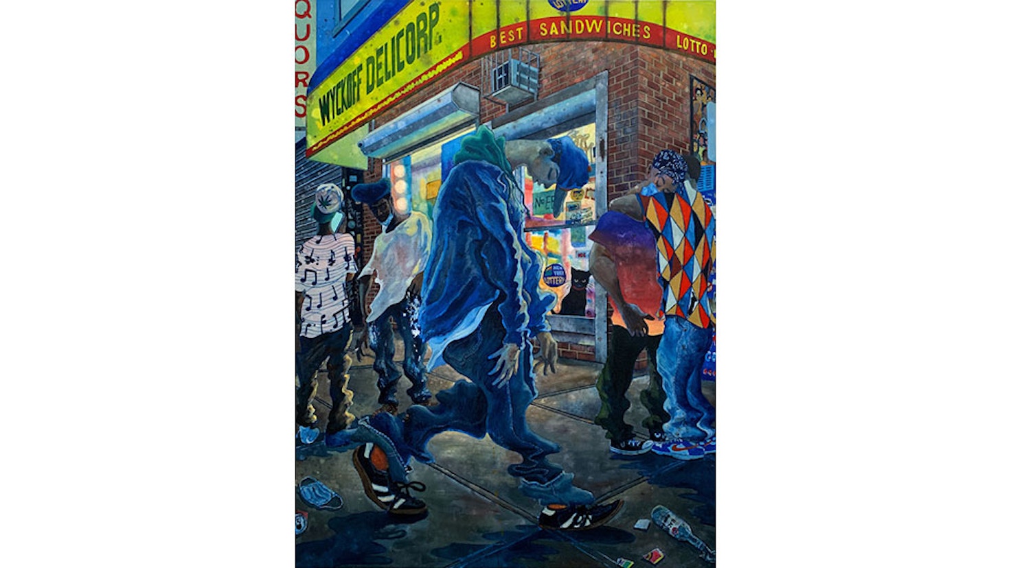 今回の展示では、岡安が近年取り組んでいるニューヨークでの生活を背景に描いた、夜の心象風景画シリーズから新作を公開。谷川俊太郎作の詩「みみをすます」からインスピレーションを得て制作した大型の絵画作品《Whisper of the Midnight》を中心に絵画作品3点と、夜のニューヨークのストリートにいる人たちをかたどったセラミックの彫刻シリーズ「Midnight Tour」を発表する。