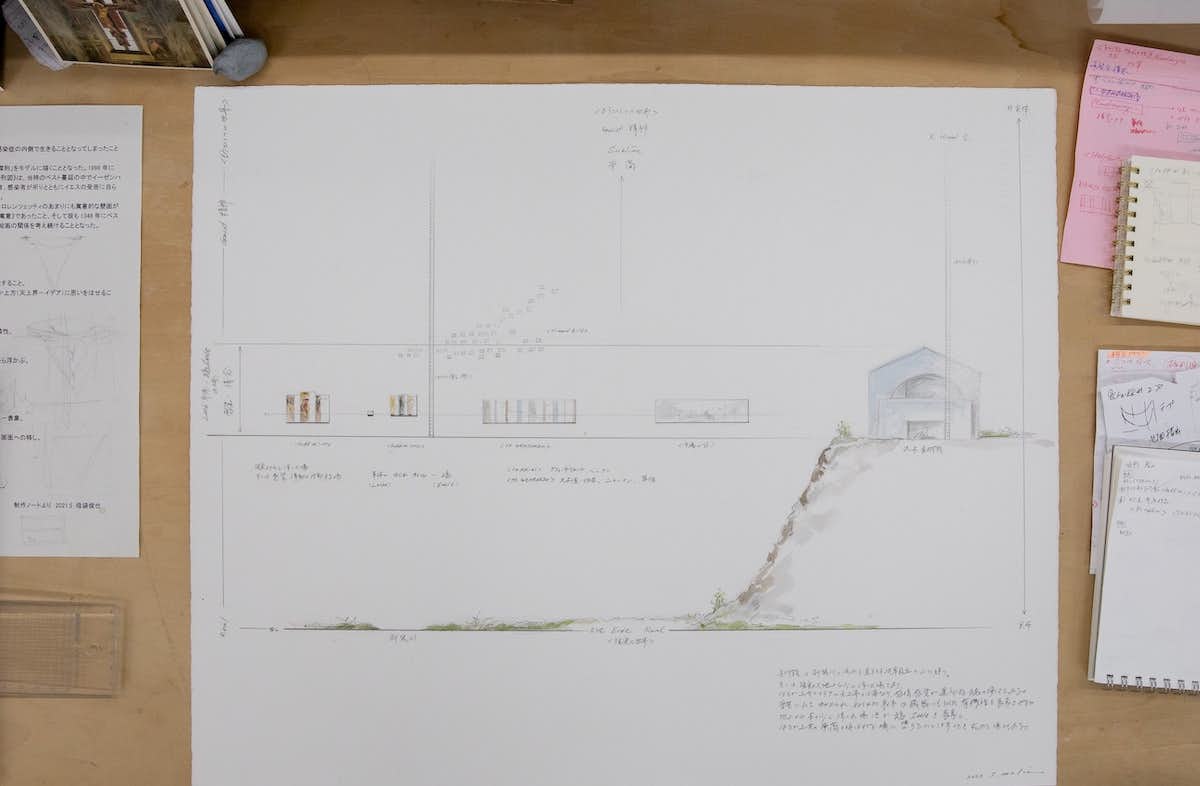 本展は、2020年に再始動した《ta・KK・ei》連作と《TA・GEMBAKZU》などを中心とし、プラン・ドローイング《Himmel Bild》《ヤコブの梯子・枠窓》を展示空間に設置することで、昨今のパンデミック、核の脅威や戦争に揺らぐ世界の現実を生きる私たちと、芸術とのかかわりについて探る。