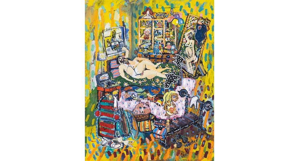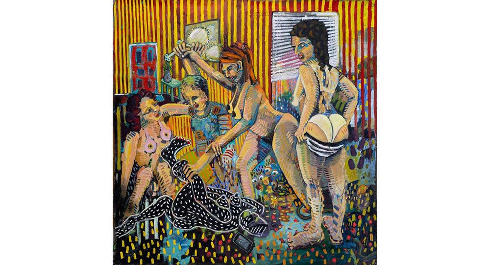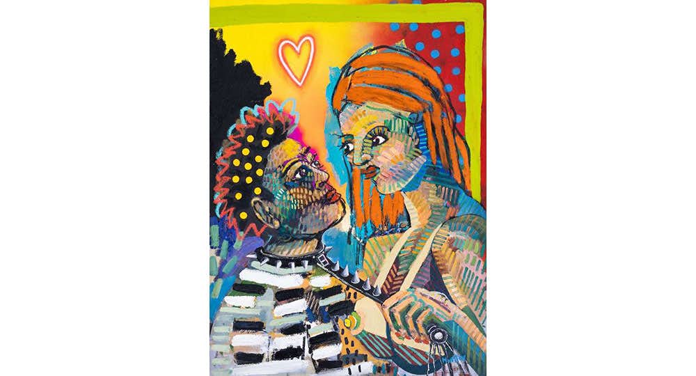 本展のタイトルにある「Not At The Dinner Table」は、政治、宗教、セックスなどの話題が家族の夕食時の会話にふさわしくないとして、ポールが育った家庭で口にされてきた言葉だ。作家はまた「the root starts with our family」と信じており、その鮮やかな⾊彩で描かれた⾼揚感のある絵は、⾒る⼈の意識を⾼め、前向きな変化をもたらす対話が⽣まれることを期待している。