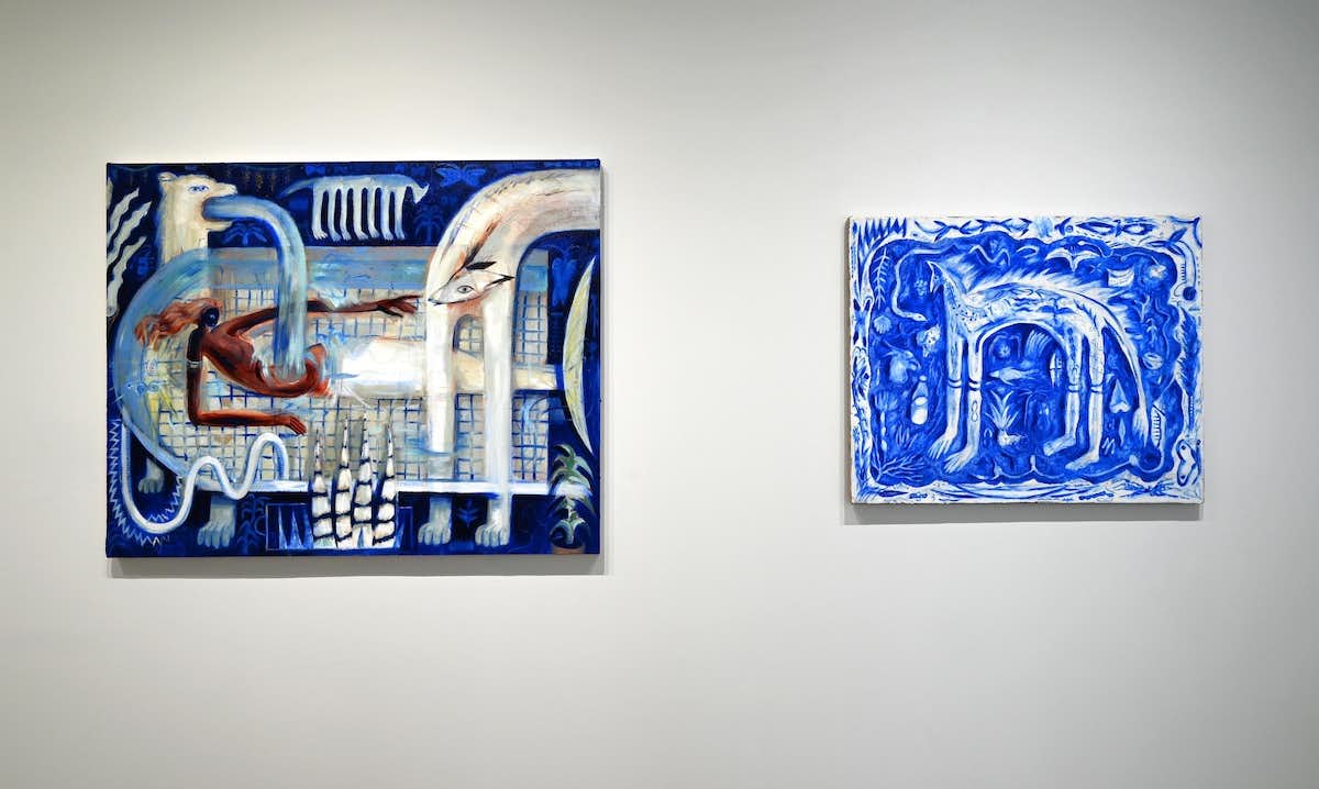 岩崎は1996年沖縄県生まれ、2022年に多摩美術大学大学院美術研究科博士前期課程絵画専攻油画を修了。修了展におけるインスタレーションは、大小の絵画、焼き物や雑貨に窓から差し込む自然光も組み入れた現実と幻想世界を行き来する白昼夢のような雰囲気が印象的だった。近年、個展やグループ展など積極的に作品を発表しており、その独自の世界観で将来が期待される若手作家のひとりだ。