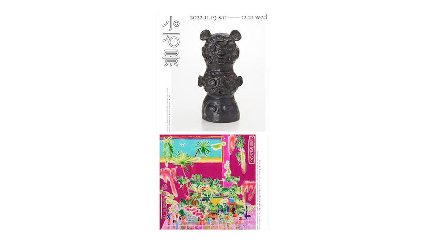 ⼩池は1980年神奈川県⽣まれ。画家・彫刻家として現在、⼤阪を拠点に活動。「架空の古代遺物」をテーマに、偶像、ツボ、⼤型ネコ類、植物、パイナップルなどをモチーフとしたセラミック彫刻、ペインティング、ドローイングを制作してきた。「異なる要素が調和しながら共存した状態」や「モノの⽤途や意味が変化する過程」へ関⼼を持ち、様々な場所と時代に由来するイメージを取り混ぜてつくられる作品は、独特の浮遊感をまとっている。