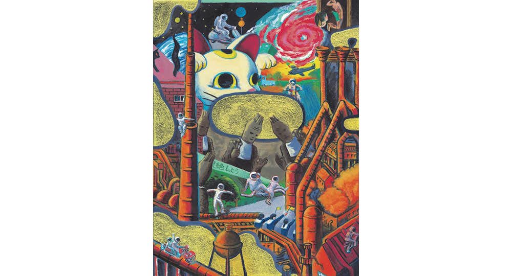 これまで日本の美術と西欧の美術が融合する作品を展開してきたTat Ito。今回の個展では、自身が視覚的や聴覚的に体感した情報の集積と、曖昧な感情の記憶を鮮やかな色彩やコミカルなモチーフで構成された、見る者を画面のなかへと導いていく作品を発表する。