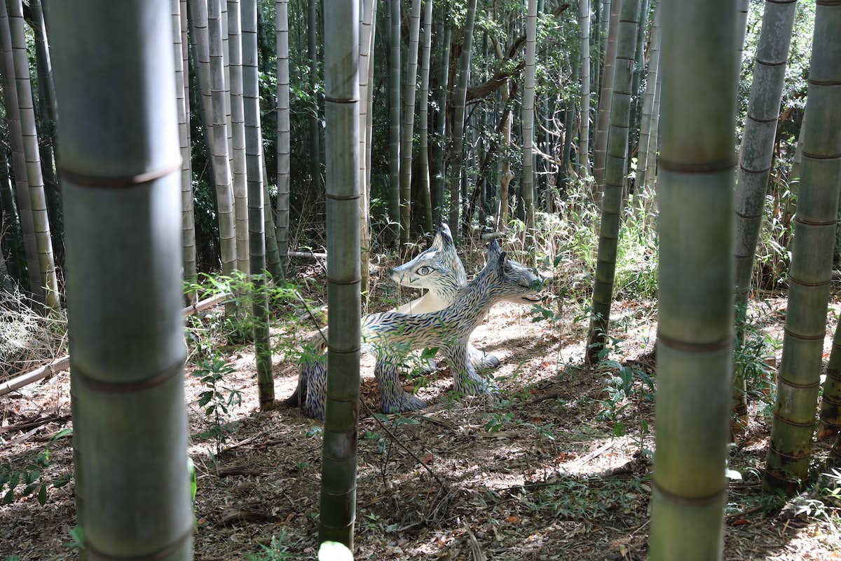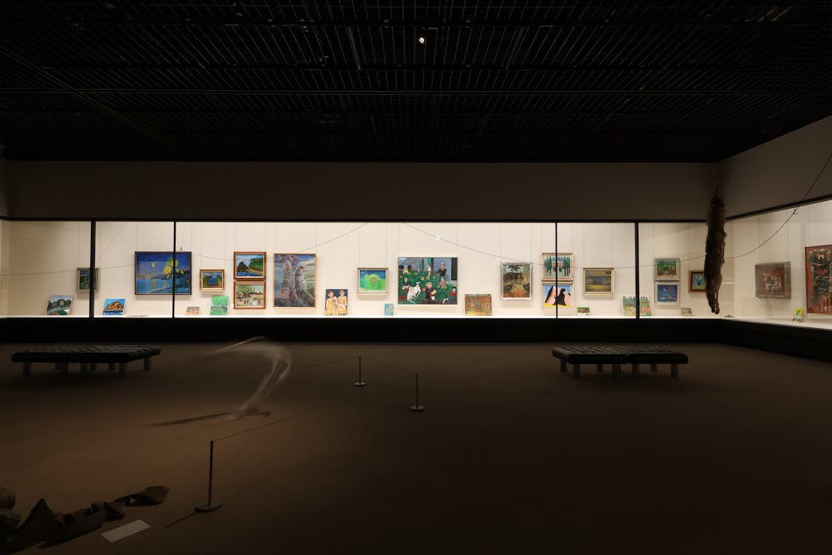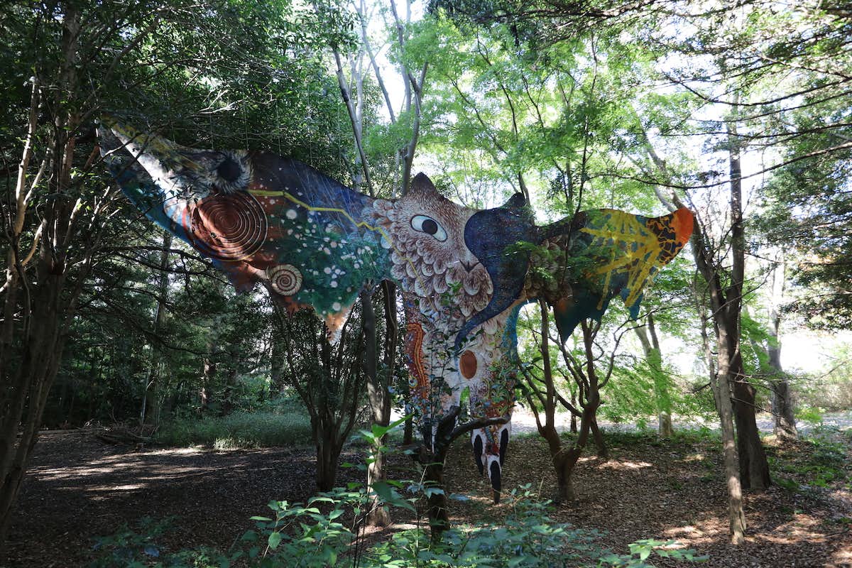 実際に裏山の小径を整備し、美術館という硬直した建築と、疎遠になってしまった自然界に、観客の身体と想像力とで新たな通路を開くいっぽう、国立療養所 菊池恵楓園(熊本県)の絵画クラブ「金陽会」の作品や、多くの人と手芸で綴る《物語るテーブルランナー》という他者の力、人間以外の造形力である《どうぶつの糞》などの作品も展示し、静岡県立美術館のコレクションと対話させる。