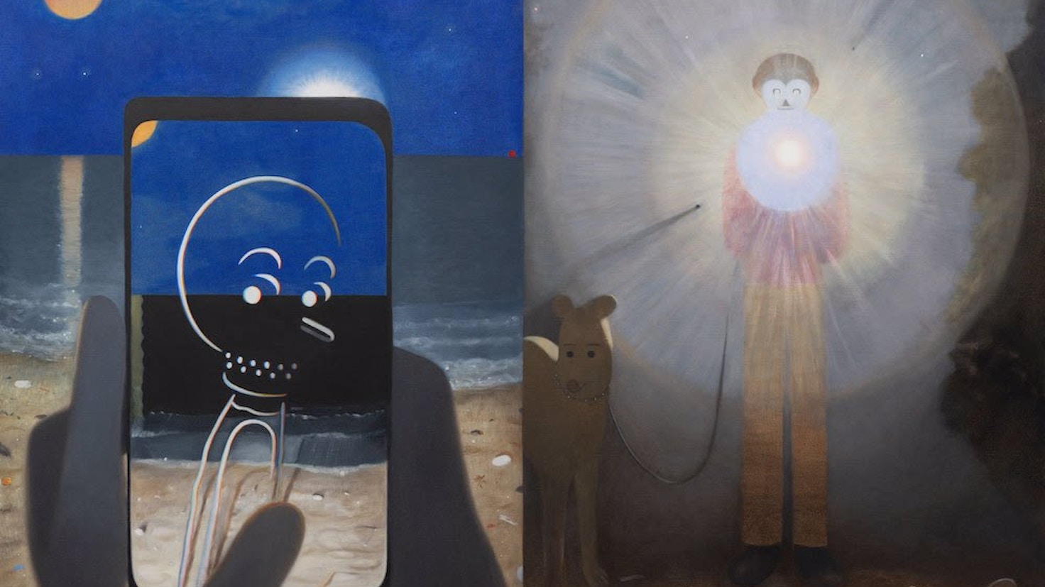 倉田の作品は、仮面のような動物化した人間や、擬人化された動物が、静謐な存在感と、ユーモラスでありながら時に不穏さを帯びて描かれる。作品に繰り返し登場するモチーフは、夕暮れ、海、夜、車、卵、寝るという行為など、作家の記憶に強烈に残っている「極めて個人的」な経験から着想を得ているという。そうしたインスピレーションと、デジタル・ドローイングや物質的な制作プロセスとの反復のあいだで、倉田は「イメージの解像度を上げたり下げたり」することで、絵画でしかありえない表現を模索している。