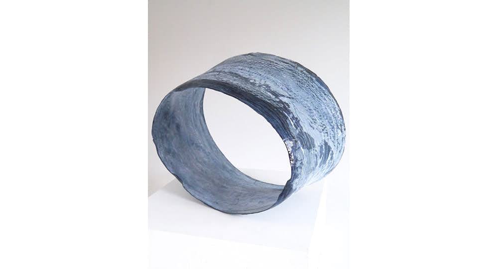 本展では新たな試みとして、釉薬の化学変化による色彩を取り込んだ新作を展示。鉱物を思わせる色彩は荒々しくも繊細な表情をたたえて、有機的な造形とあいまって凛とした美しい緊張を空間につくり出すという。会場構成は萬代基介建築設計事務所。